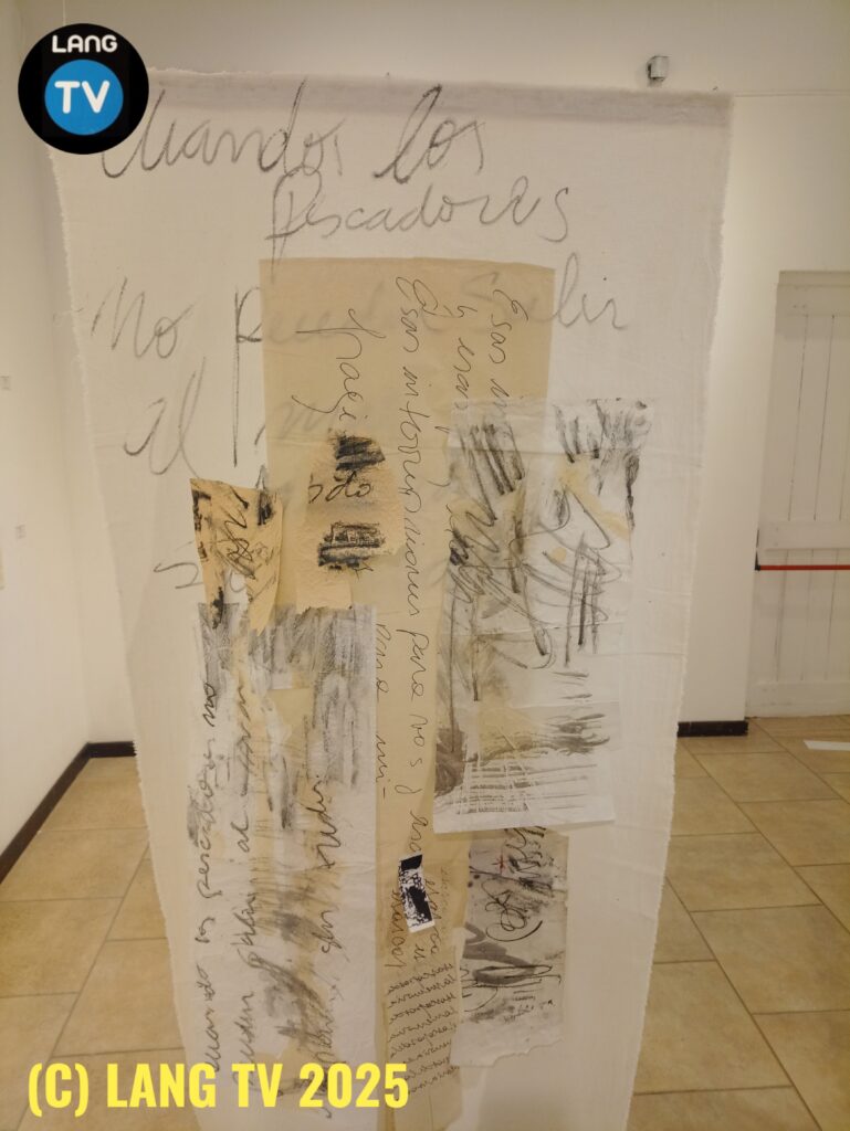 Una veintena de obras, que conjugan dibujos, fotografías, intervenciones y collage, escritura, con diferentes texturas y soportes, como tela, papel o ambas.