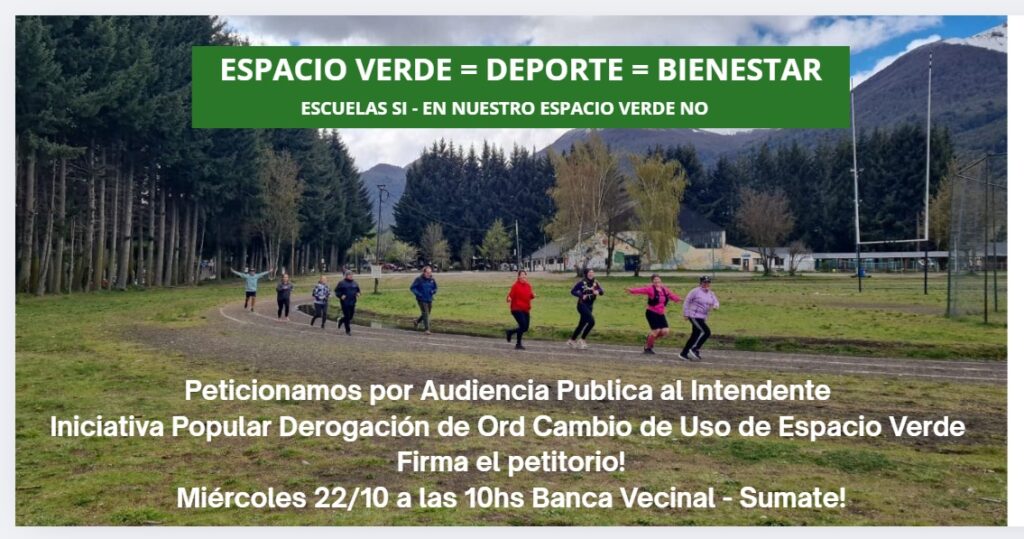 Buscan se derogue la Ordenanza que aprobó el cambio de uso del lote del CEF7, se basan en que es un espacio verde inalienable, el llamado a la Iniciativa lo fundamentan en art. 41-43 CN, 5-90-93 de Constitución de Neuquén, Ley 25.675 y COM, Código Urbano.