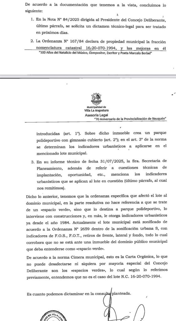 En las últimas horas la abogada Silvana Gordillo presentó un informe de dominio requerido al Registro de la Propiedad Inmueble de Neuquén, donde consta que el lote del CEF7 donde se quieren construir 2 escuelas es un espacio verde.