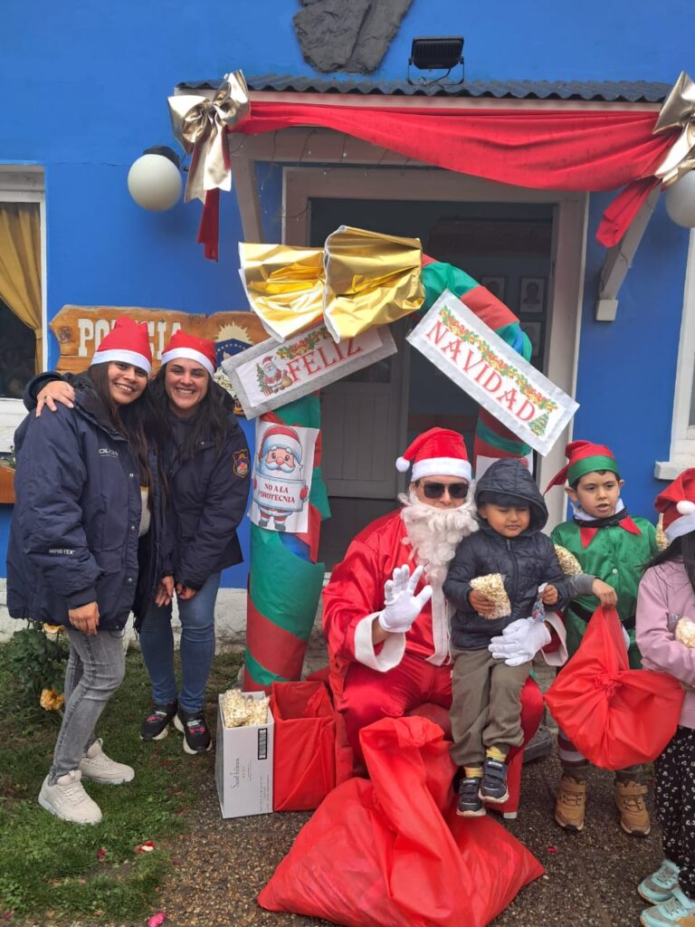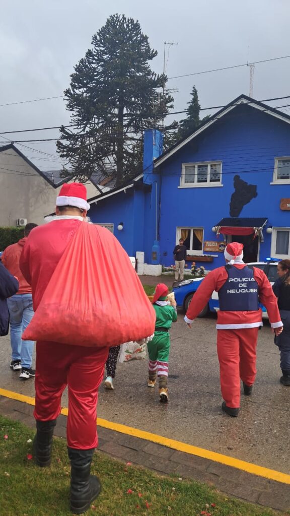Este lunes 22 de diciembre, pese al mal tiempo y gracias a la colaboración del personal de la institución, Papá Noel llegó a la comisaría 28 de Angostura, trasladado en un móvil.