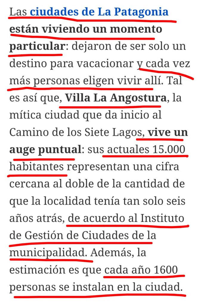 Siguiendo con los despropósitos respecto a VLA otra frase «una ciudad donde la gente se queda. El angosturense estudia afuera y vuelve». Otra vez no cita (y ni acá hay registro de cuánta juventud se va y regresa con un título, por el boca a boca o viendo la formación de los equipos de fútbol local, está totalmente desmentido), curiosamente también haciendo click sobre «ciudad donde la gente se queda» lleva a otra «nota», en este caso de Manuela Viñales, que trata sobre gente que vacaciona en propiedades ajenas mientras sus dueños estudian en otras ciudades (y se cita a la Angostura donde eso sucede, sin ningún tipo de precisiones, rigurosidad -10 es poco, no?, y aplicado a la nota de Contreras……enfin, sigamos).