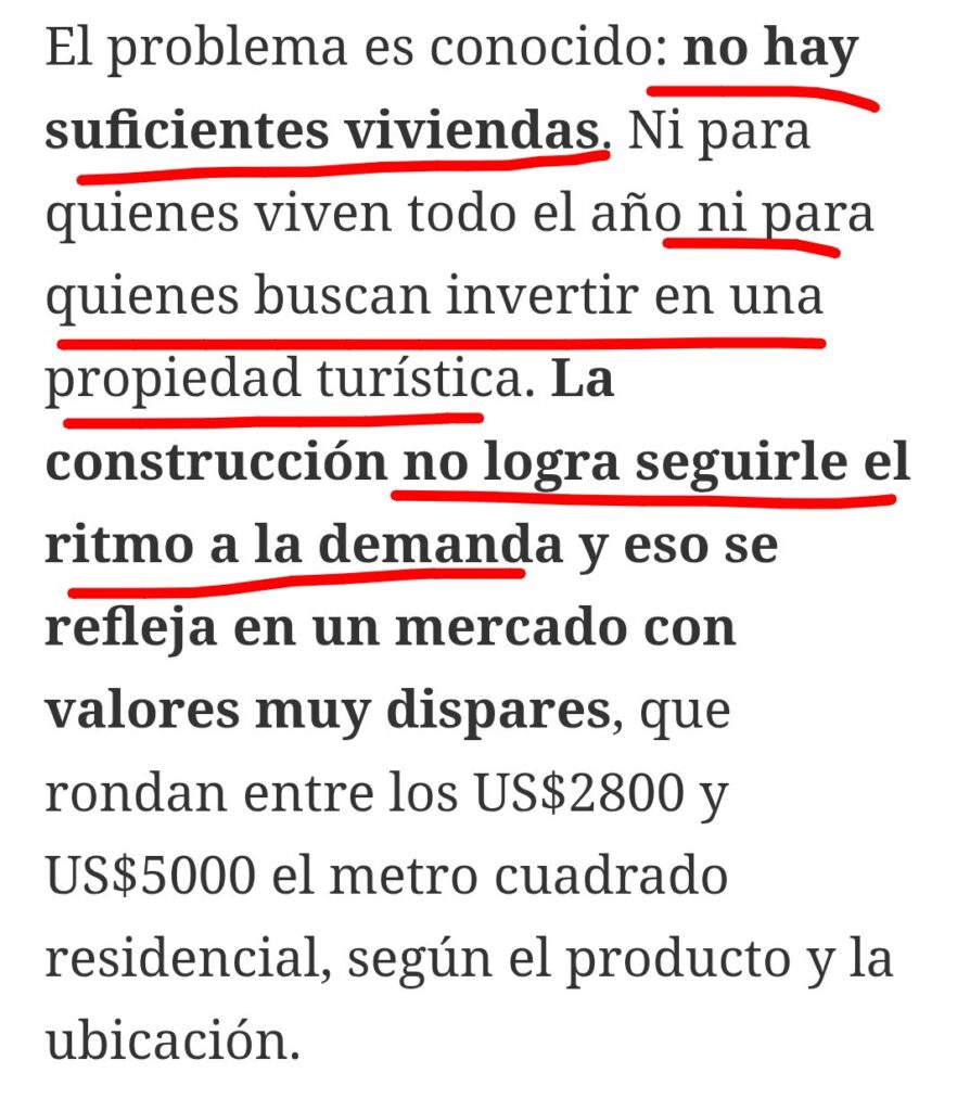 Continúa Contreras «El problema es conocido: no hay suficientes viviendas……..ni para quienes buscan invertir en una propiedad turistica. La construcción no logra seguirle el ritmo a la demanda».