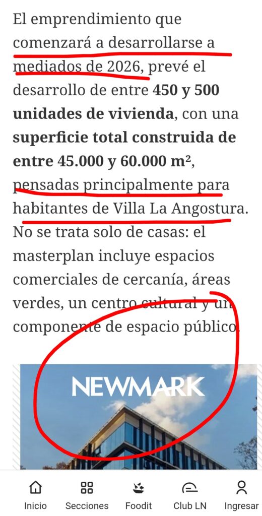 Entonces aparece Domingo Speranza, de Newmark, que es quien va a vender (o ya vende en los hechos?) lo que Consultatio (Eduardo Costantini) va a crear. Lo «divertido» o «curioso», es que si se lee la nota en la versión teléfono celular aparece en medio de cada estrofa publicidades de inmobiliarias, entre ellas……. si NEWMARK.