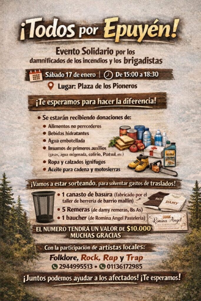 Este sábado 17 varios eventos artísticos de realizarán en Angostura en beneficio de las localidades de Chubut afectadas por incendios.
