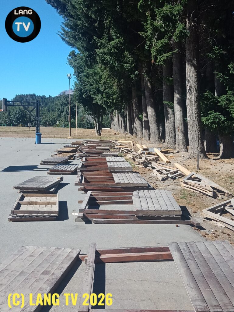 Este viernes 6 por la mañana comenzaron los trabajos de armado de stands del patio de comidas en el playón del CEF7 para la Fiesta de los Jardines 2026 (14 a 17 de febrero).