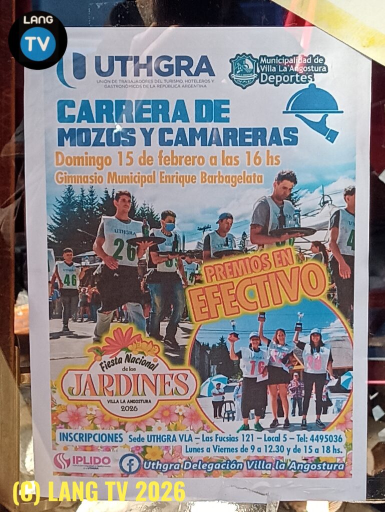 Este domingo 15 se viene una nueva edición de la carrera de mozas y mozos organizada por UTHGRA, a las 16hs. en el gimnasio Barbsgelata, en el segundo día de la Fiesta de los Jardines. Habrá grandes premios en efectivo.