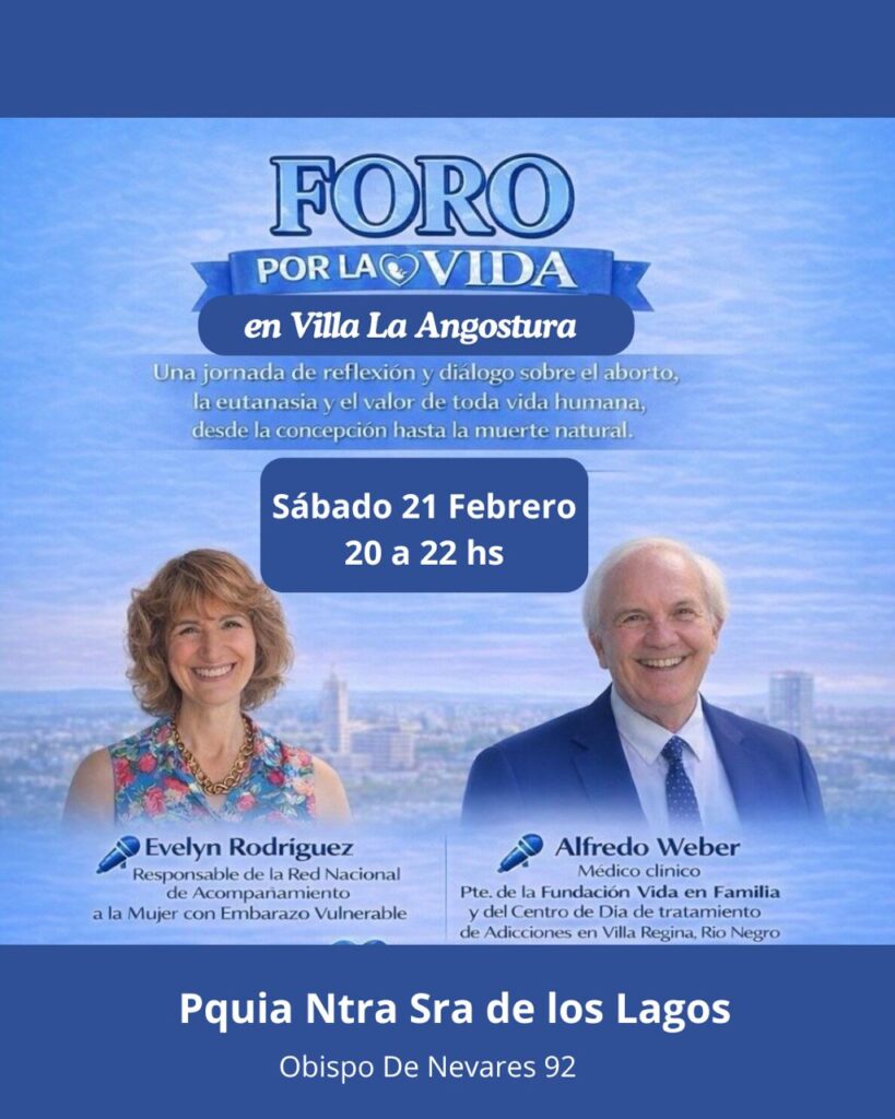 Este sábado 21 en la Parroquia Nuestra Señora de Los Lagos se realizará una jornada de reflexión sobre la vida, desde las 20hs.